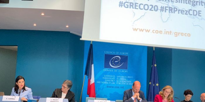 Ministrja e Drejtësisë, Etilda Gjonaj, me ftesë të Ministres Franceze së Drejtësisë, znj. Nicole Belloubet, mori pjesë, si një nga folëset kryesore, në Konferencën e Nivelit të Lartë, e organizuar në Strasburg për 20 vjetorin e GRECO, nën kujdesin e Presidencës Franceze. Konferenca organizohej me qëllim diskutimin e rolit të Këshillit të Evropës (GRECO) në luftën kundër korrupsionit dhe prezantimi nga të ftuarit e nderit të arritjeve në vendet e tyre. Ministrja Gjonaj, si një nga të ftuarit e nderit dhe si përfaqësuese edhe e vendit të vetëm nga Ballkani Perëndimor, prezantoi në këtë konferencë arritjet dhe rezultatet e Shqipërisë në luftën korrupsionit. Të ftuarit e tjerë të nderit në konferencë ishin edhe Sekretari i Përgjithshëm dhe Presidenti i Asamblesë Parlamentare të Këshillit të Evropës, Sekretari i Shtetit për Drejtësinë i Mbretërisë së Bashkuar, Ministri i Drejtësisë i Gjeorgjisë dhe Sekretari i Shtetit i Drejtësisë së Kroacisë.