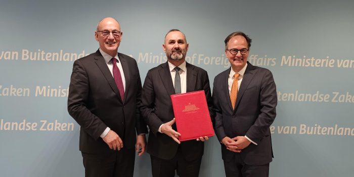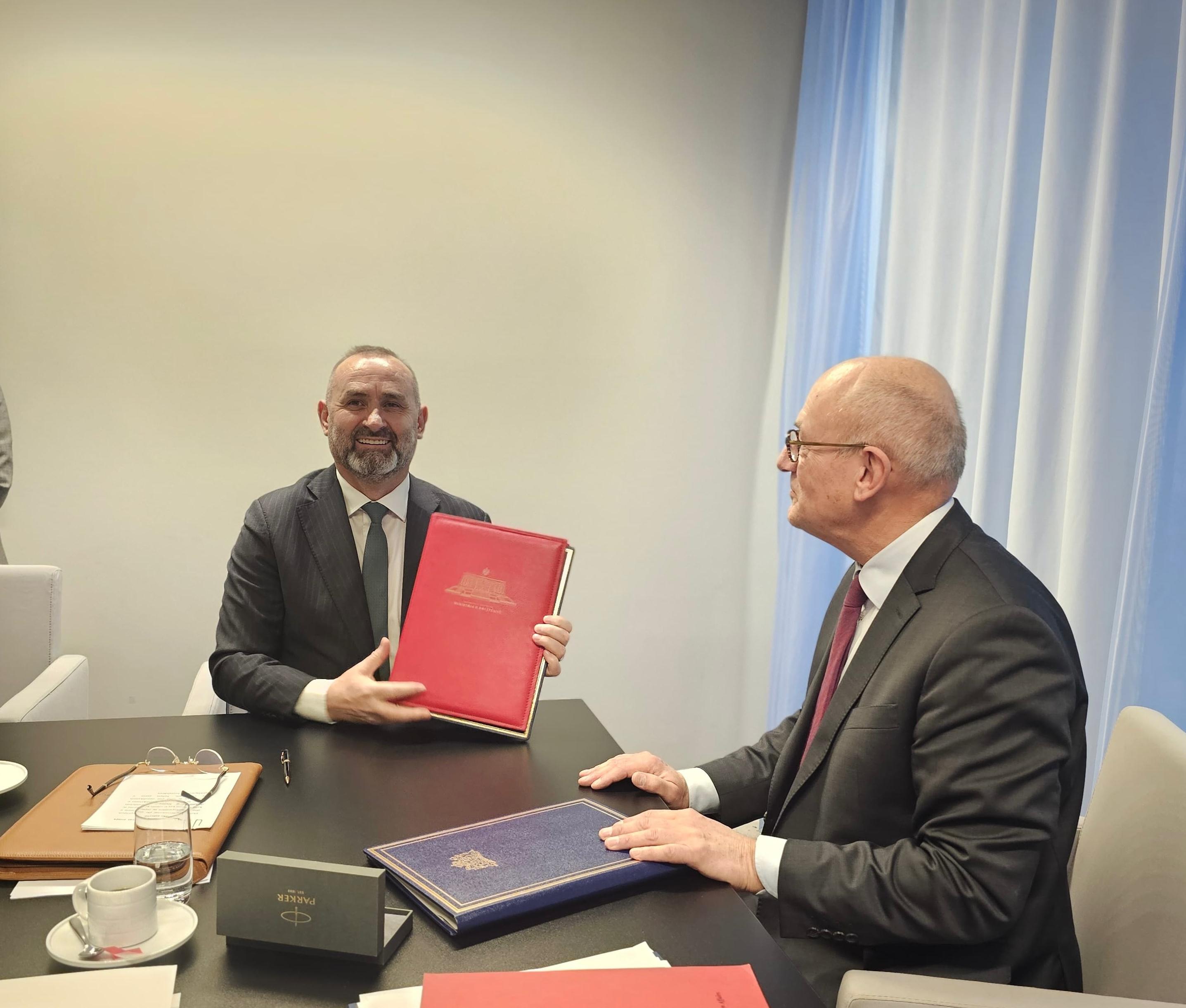Shqipëria, përfaqësuar nga Ministri i Drejtësisë Ulsi Manja, ka nënshkruar sot në Hagë “Konventën për Marrëveshjet për Zgjedhjen e Gjykatës” dhe “Protokollin për Ligjin e Zbatueshëm për Detyrimet Ushqimore”, në prezencë të z. Christophe Bernasconi, Sekretar i Përgjithshëm i Byrosë së Përhershme për të Drejtën Ndërkombëtare Private (HÇH) dhe z. Jules van Eijndhoven, MPJ Holandese.