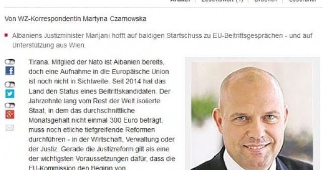 Shqipëria është tashme anëtare e NATO-s, por pranimi në Bashkimin Europian nuk është akoma konkret. Qysh nga viti 2014, vendi ka marrë statusin e kandidatit për aderim. Shteti i izoluar për dekada nga pjesa tjetër e botës, në të cilin paga mesatare mujore nuk është as 300 euro, duhet të zbatojë edhe reforma të thella – në ekonomi, administratë dhe drejtësi. Pikërisht reforma në drejtësi është një nga parakushtet më të rëndësishme që Komisioni i BE-së të rekomandojë fillimet e bisedimeve të aderimit me Shqipërinë. Në intervistë, Ministri i Drejtësisë Ylli Manjani shpreh shpresën që organet e Brukselit këtë hap do ta hedhin sivjet.