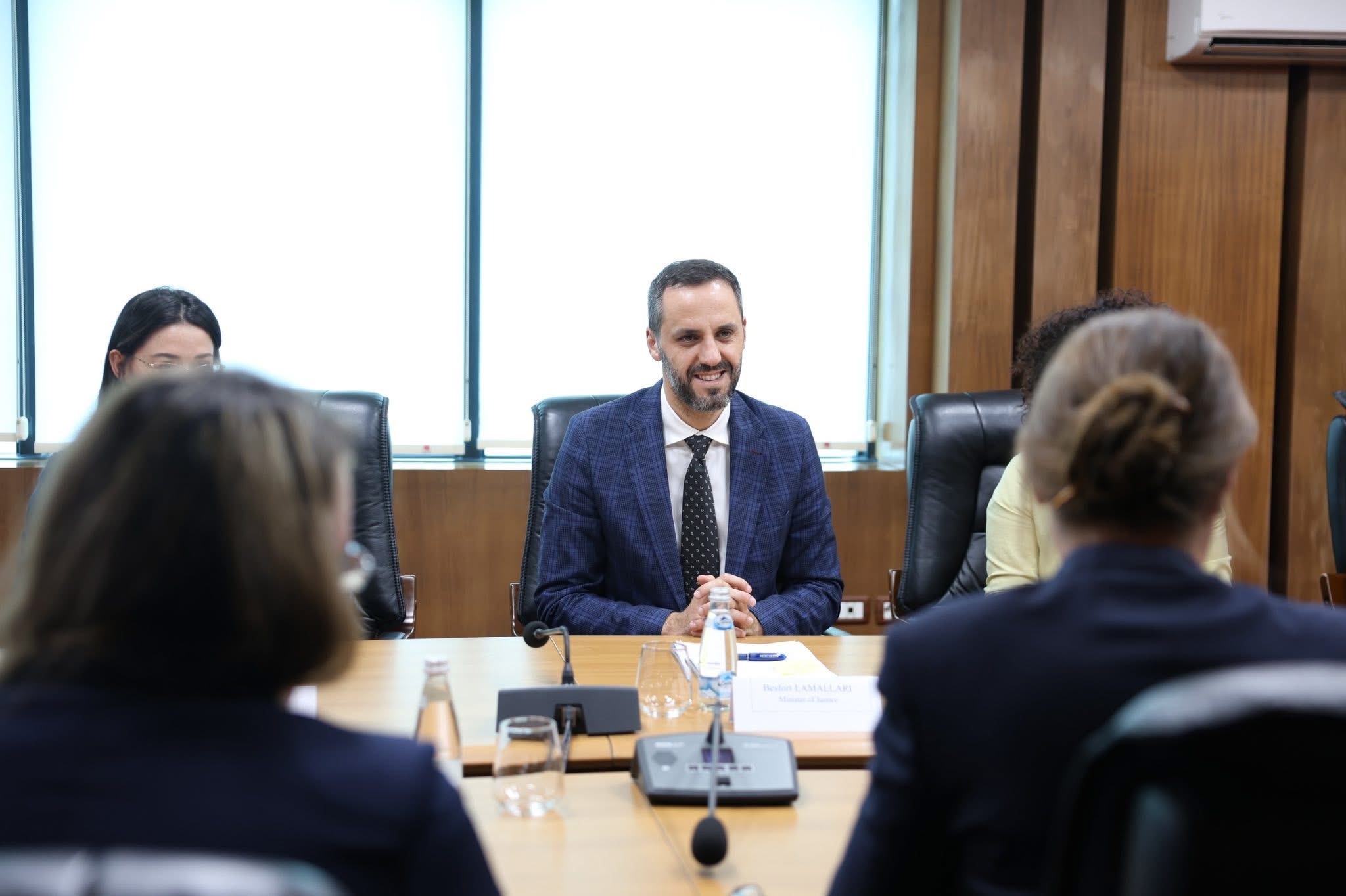 Ministri i Drejtësisë, z. Besfort Lamallari, priti sot në një takim dy përfaqësuese të Këshillit të Europës, znj. Lilja Gretarsdottir, drejtuese e Departamentit të të Drejtave të Njeriut, Drejtësisë dhe Bashkëpunimit Ligjor dhe znj. Giulia Re, drejtuese e zyrës së KiE në Tiranë. Në njoftimin pas takimit, z. Lamallari thotë se mes çështjeve të diskutuara krahas prezantimit të prioriteteve të Ministrisë së Drejtësisë në Programin Qeverisës 2025-2029, ishin edhe ndryshimet që do të bëhen në Kodin e ri Penal.