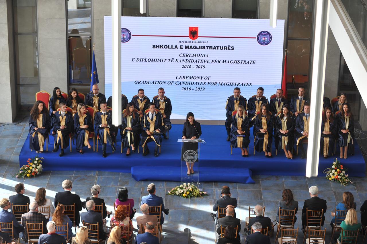 Ministrja e Drejtësisë Etilda Gjonaj, ka qenë e ftuar në shkollën e Magjistraturës, ku ka adresuar një sërë mesazhesh konkrete për magjistratët e rinj që sapo diplomohen.