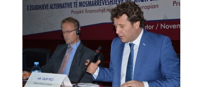 Në fjalën e tij të hapjes, Zëvendës/Ministri i Drejtësisë, z. Idlir Peçi theksoi se reforma e rëndësishme e alternativës së re të zgjidhjes së mosmarrëveshjeve, me më pak shpenzime, më pak kohë, më pak burokraci e më shumë besim, do të krijojë një klimë të re në marrëdhëniet mes qytetarëve dhe zgjidhjes së konflikteve.